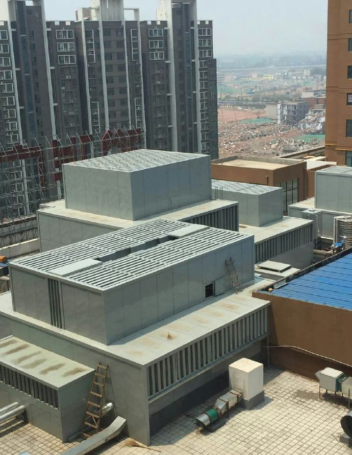 2.降噪的基本原理:聲波在傳播階段遇到障礙物時(shí),會(huì)發(fā)生反射、散射和繞射三種狀態(tài)。聲屏障是在聲源和聲音接收點(diǎn)之間添加的裝置。用于隔離和吸收從聲源到聲音接收點(diǎn)的直達(dá)聲波,使部分聲波在遇到障礙物時(shí)被反射,部分聲波被吸附減弱,然后被屏幕利用。附加體散射(很?。?、屏頂衍射等衰減方式到達(dá)收聲點(diǎn),達(dá)到減輕收聲點(diǎn)噪聲影響的目的,達(dá)到降噪效果。 1、為控制風(fēng)機(jī)低頻噪聲,在排風(fēng)口安裝消聲設(shè)備。消音設(shè)備的選擇非常重要。一般消聲設(shè)備對(duì)中低頻噪聲影響不大。電阻消聲設(shè)備具有很好的控制效果,但頻率選擇性很強(qiáng),所以一般選用阻抗復(fù)合消聲設(shè)備。阻抗復(fù)合消聲設(shè)備是指吸聲與反射聲音適當(dāng)結(jié)合的消聲設(shè)備。同時(shí)具有電阻式消音器消除中高頻噪聲和電阻式消音器消除低頻中頻噪聲的特點(diǎn),具有寬頻帶消音效果。 2. 在進(jìn)風(fēng)口處安裝消音器或隔音屏障。安裝隔音屏障時(shí),首先要考慮的是隔音屏障與冷卻塔百葉進(jìn)風(fēng)口之間的距離為1m左右,以保證冷卻塔的通風(fēng)進(jìn)風(fēng)口不被堵塞,從而使冷卻塔的實(shí)際冷卻效果更強(qiáng)。為了防止噪聲被折射而影響消聲導(dǎo)管的聲學(xué)效果,可在消聲導(dǎo)管附近安裝相應(yīng)長(zhǎng)度的聲屏障,以提供輔助降噪作用。冷卻塔噪聲處理相對(duì)容易,但在防止散熱性能受損的同時(shí),必須充分考慮隔音管理。消音器和消音百葉雖然可以顯著降低噪音,但必須合理設(shè)計(jì),設(shè)計(jì)時(shí)必須充分考慮散熱性能和功率。表現(xiàn)。如果結(jié)構(gòu)不合理,就達(dá)不到降噪的目的。如果流阻過(guò)大,會(huì)損害冷卻塔的運(yùn)行,降低制冷量。不良的功率性能設(shè)計(jì)也會(huì)增加阻力,從而產(chǎn)生混響噪聲,所以在處理階段必須綜合考慮。 。